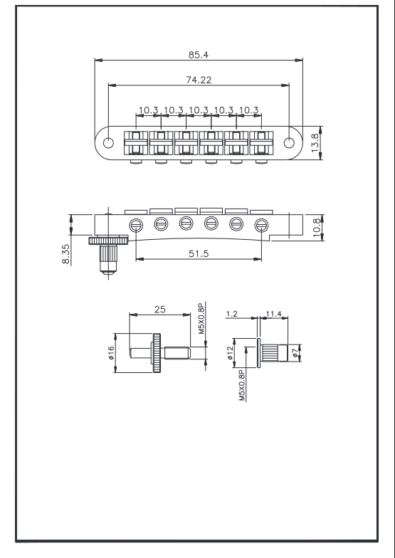 The Grover Tune-O-Matic style bridge is a direct original equipment replacement for all guitars utilizing this type. The saddle can be individually adjusted with the simple turn of a screw. Each bridge comes with two inserts and two thumb wheels for mounting and adjusting. Available in: