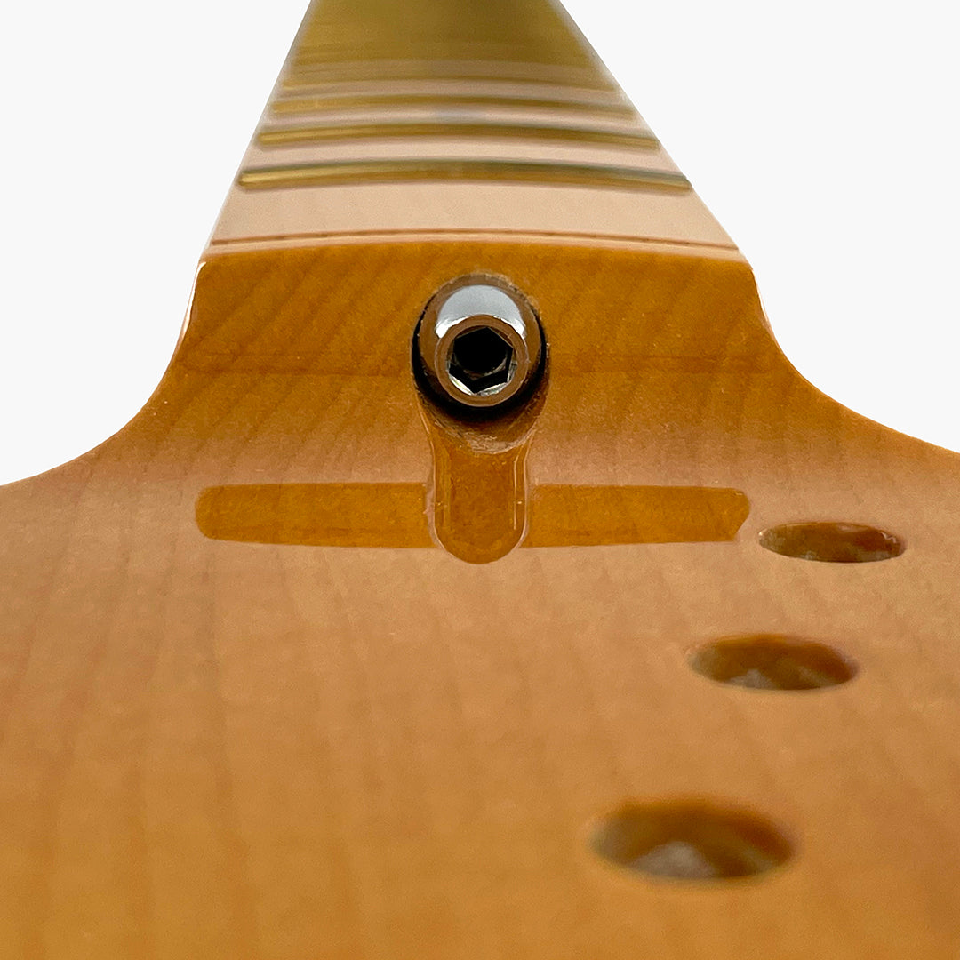Our LMF replacement neck for Stratocaster® is “officially licensed by Fender®” and made to exacting quality standards in Japan. Offering a 7.25" radius fretboard, vintage frets, and large "CBS" headstock, the LMF is true throwback to the 70s era of rock n' roll! Sprayed with a tinted polyurethane finish, the LMF is ready to installed and put to work!
