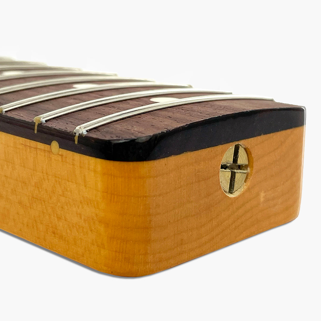 Our TRNF replacement neck for Telecaster® is “officially licensed by Fender®” and made to exacting quality standards in Japan. With 21 vintage frets, a 7.25" fingerboard radius, and a vintage tinted nitrocellulose topcoat, the TRNF is perfect for the player craving the look, feel and playability of a vintage neck with the added warmth of a rosewood fretboard!