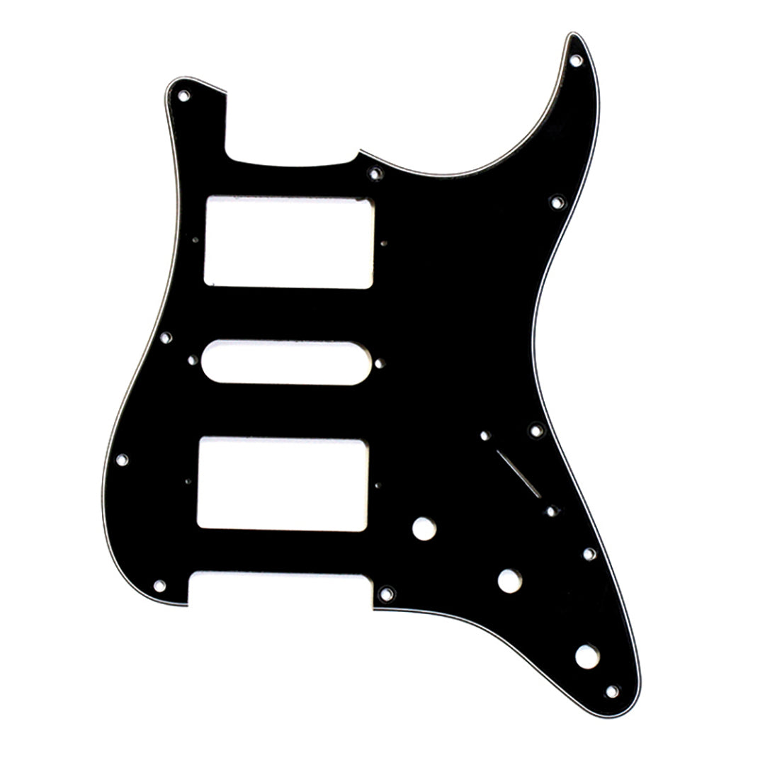 Stratocaste pickguard with humbucker/single coil/humbucker (H/S/H) cutout. Fits USA spec Fender. Not compatible with Squire.