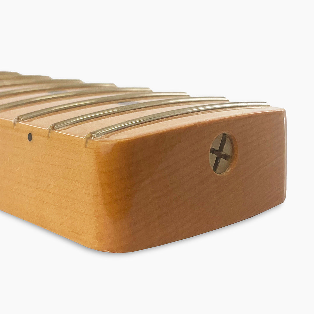Our PMF replacement neck for Precision Bass® is “officially licensed by Fender®” and made to exacting quality standards in Japan.  With a wider 1-5/8" nut width and a more consistent thickness down the neck, the PMF has a "beefier" feel that has become a favorite for players ranging from R&B all the way to punk and metal genres.  Featuring 20 jumbo frets, a tinted polyurethane finish, and a one-piece maple design for a brighter tone and better sustain, the PMF comes ready to be installed and put to work!