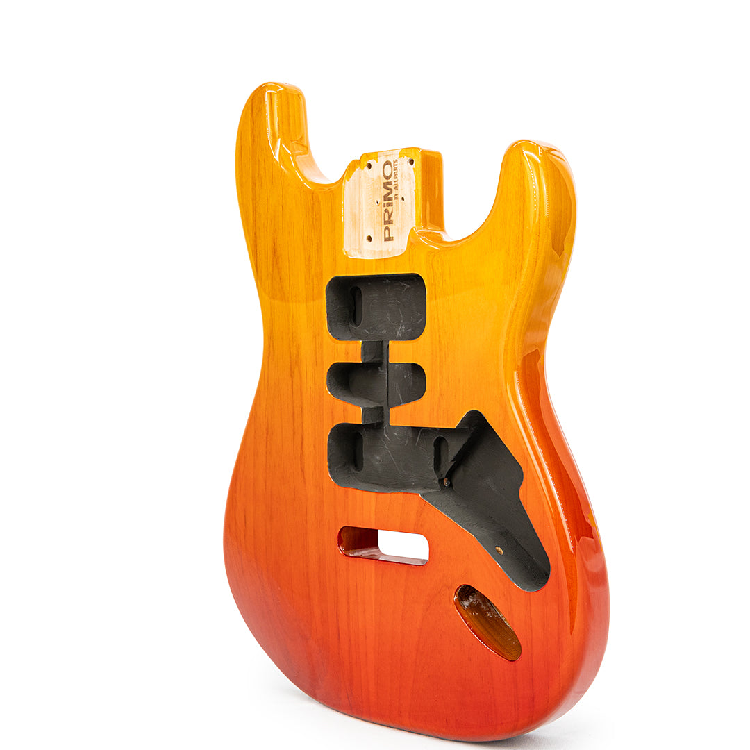 Patterned after the Fender® Player Series Stratocaster®, our PRiMO replacement Strat® bodies offer fans of this iconic design a high-performance chassis on which to build their dream guitar. True to the originals, our replacement bodies feature larger pickup cavity routes in the neck and bridge positions to allow for humbucker and P-90 pickups as well as traditional Strat single coils. Made of Alder, our PRiMO bodies come with pre-shielded cavities and are available in an array of non-standard gloss finishes. If you’ve dreamed of creating your own take on Fender’s classic design, our PRiMO replacement bodies are the perfect place to start!