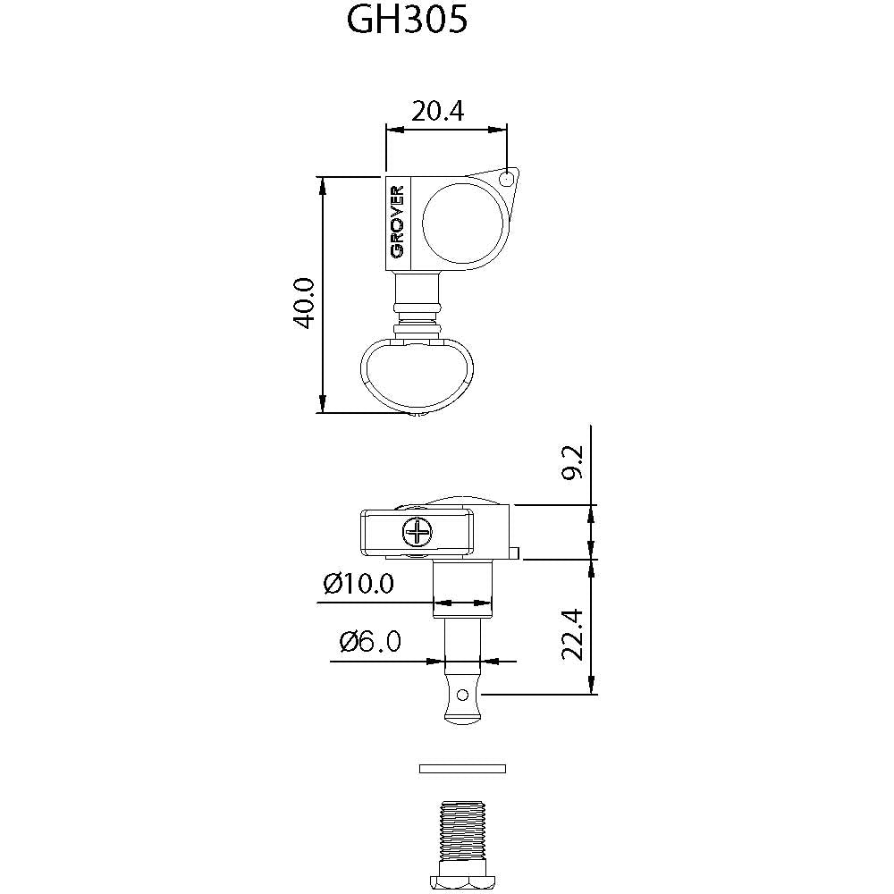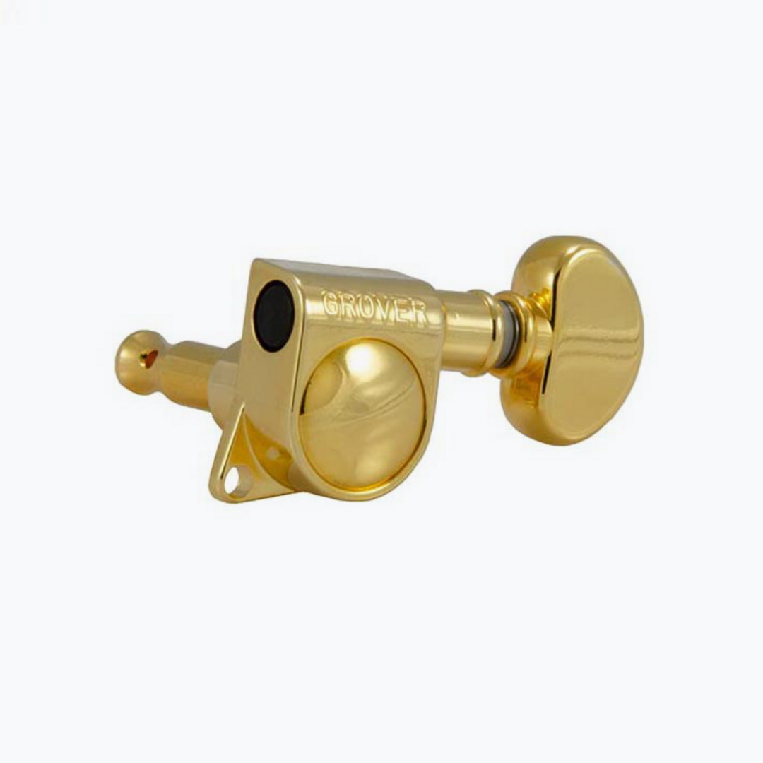 The Mid-Size series is made with the same quality as the other Rotomatic® models. Slightly larger than the Mini Rotomatics®, the mid size series features an 18:1 gear ratio for smoother, more precise tuning. This compact machine head is perfect for use on smaller and in-line headpieces. Allparts #TK-7905.