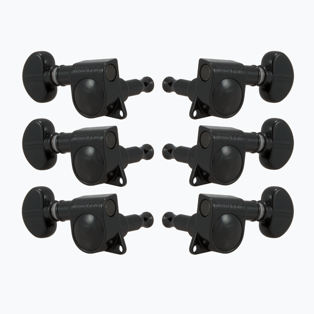 Black Chrome For standard guitars, 3 Treble and 3 Bass, Set of 6