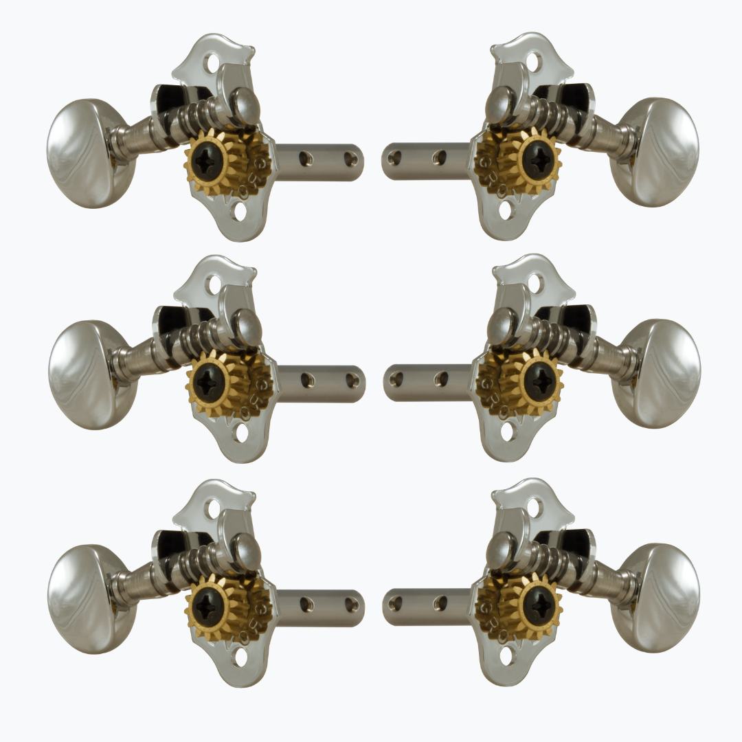Nickel For slotted guitar head stocks, 3 Treble and 3 Bass, Set of 6