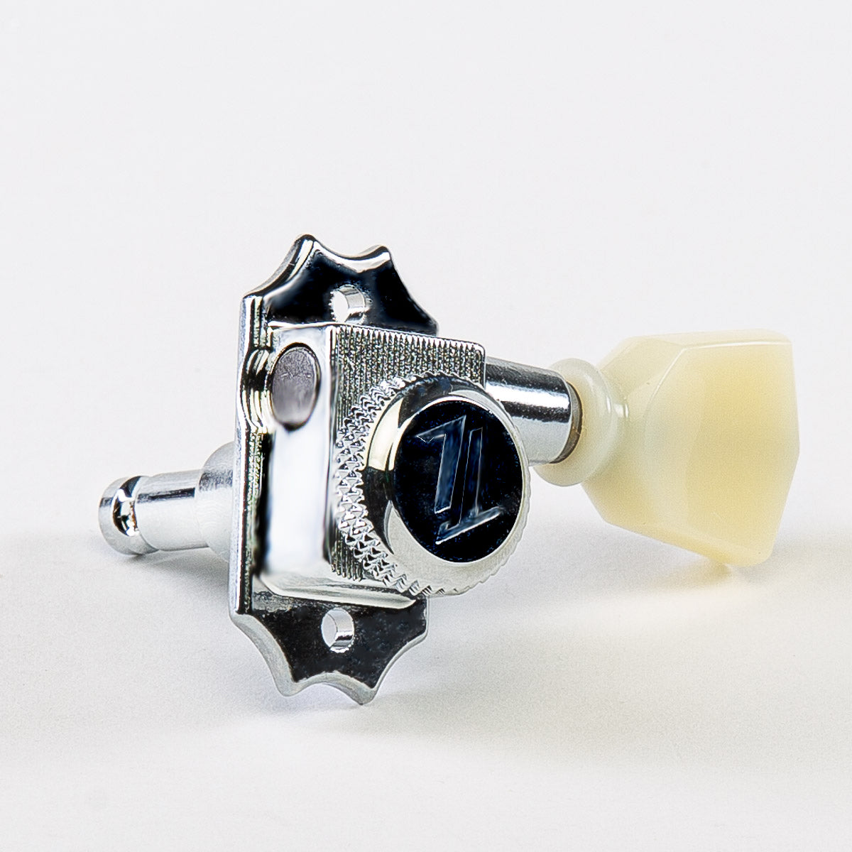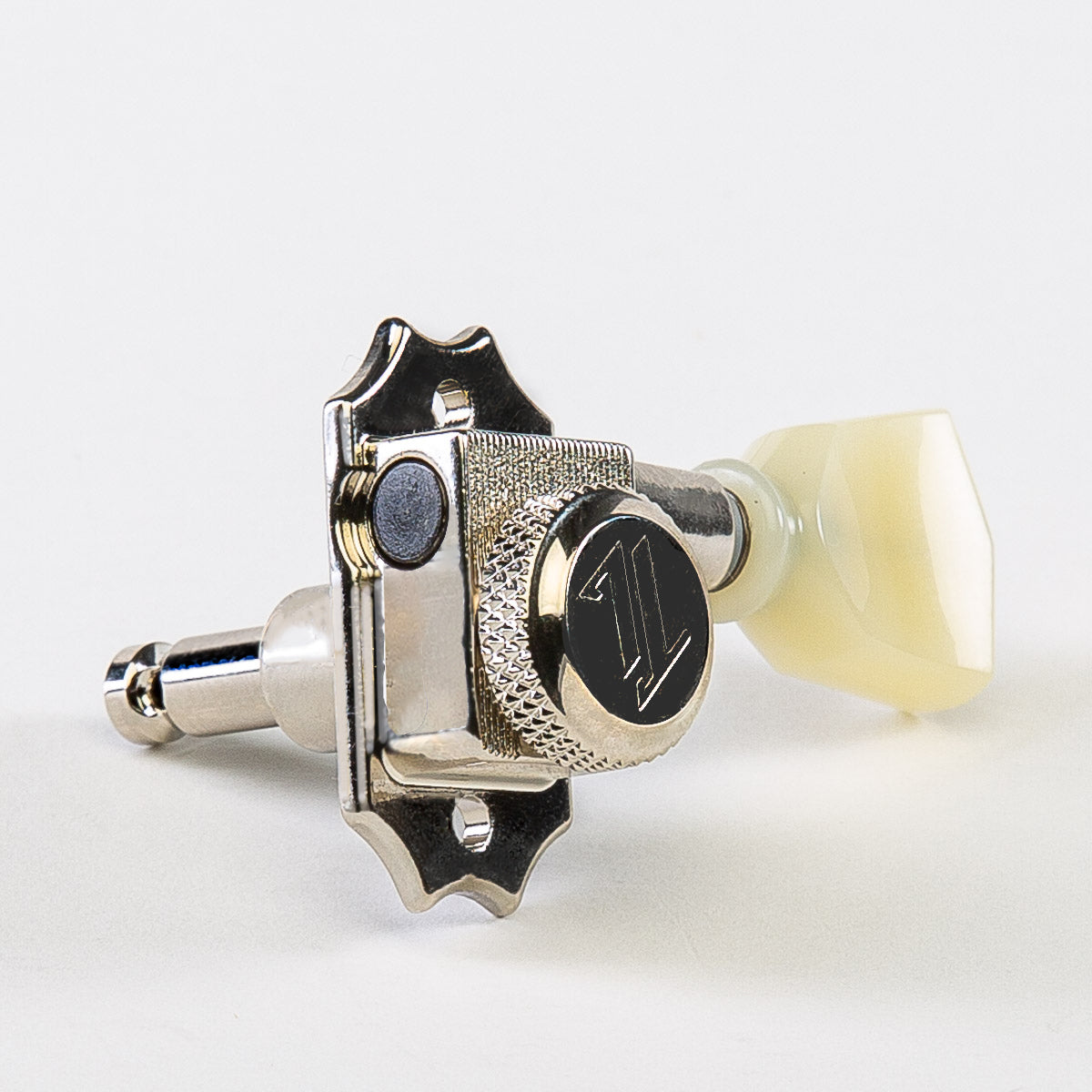 Combining vintage aesthetics with modern manufacturing techniques, our True Lok Vin-Mod series tuning keys offer fans of vintage guitars ultimate tuning stability while maintaining a classic, traditional appearance inspired by tuning keys used on vintage guitars. Combined with its string locking mechanism and 18:1 gear ratio, a tension washer is installed between the string post and base plate to eliminate “post wiggle,” making these keys accurate and ultra stable. Players will notice the silky-smooth feel employed by internal nylon washers that cushion the key’s gear shaft. Lastly, string changes are made easy by simply pulling the string through the tuner post and locking it in place before tuning to pitch. True Lok Vin-Mod keys are the perfect solution for those wanting to preserve the classic look of vintage instruments with the accuracy and stability of a modern locking tuning key!