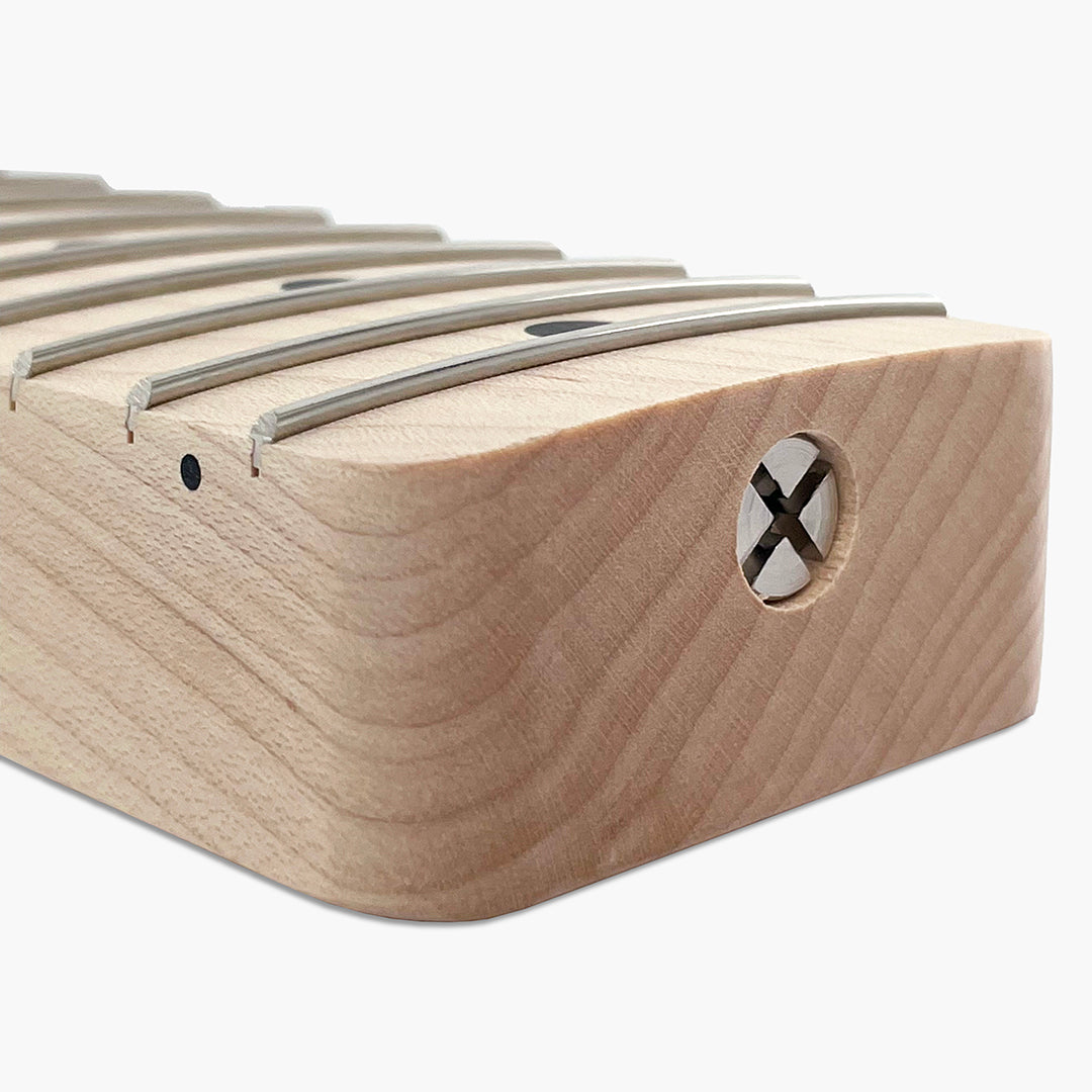 Our TMO-C replacement neck for Telecaster® is “officially licensed by Fender®” and made to exacting quality standards in Japan. Offering a modern 10” fretboard radius and 21 tall frets, this neck offers easy playability and super-smooth string bending. Unfinished and ready to spray, you can finish our TMO-C any way you'd like!