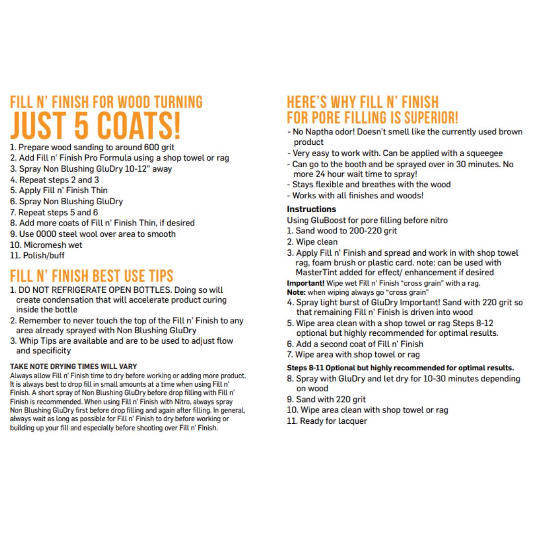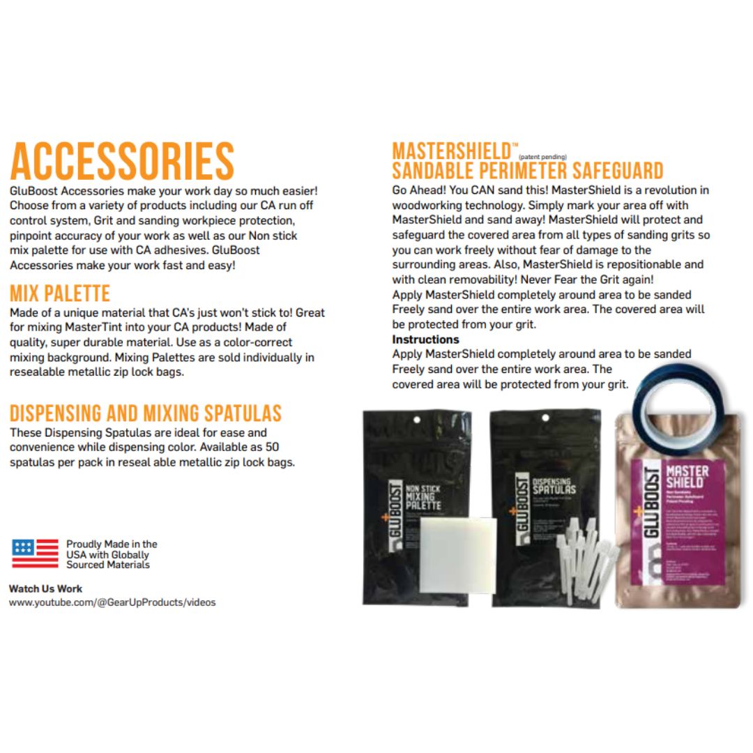 With a super long open time, MasterGel Ultra will never separate and works beautifully with GluBoost GluDry Accelerator. Does not penetrate so it’s just great for rosettes and soft wood work and it works great with lacquer! Available in a large 20 gram easy to handle metal tubes with included clog resistant tips for controlled application. Also works with our whip tips for even finer control!
