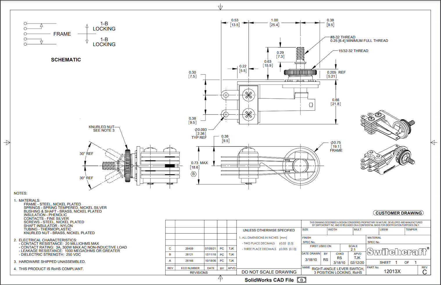 SWITCHCRAFT® RIGHT ANGLE TOGGLE - MFG# 12013X