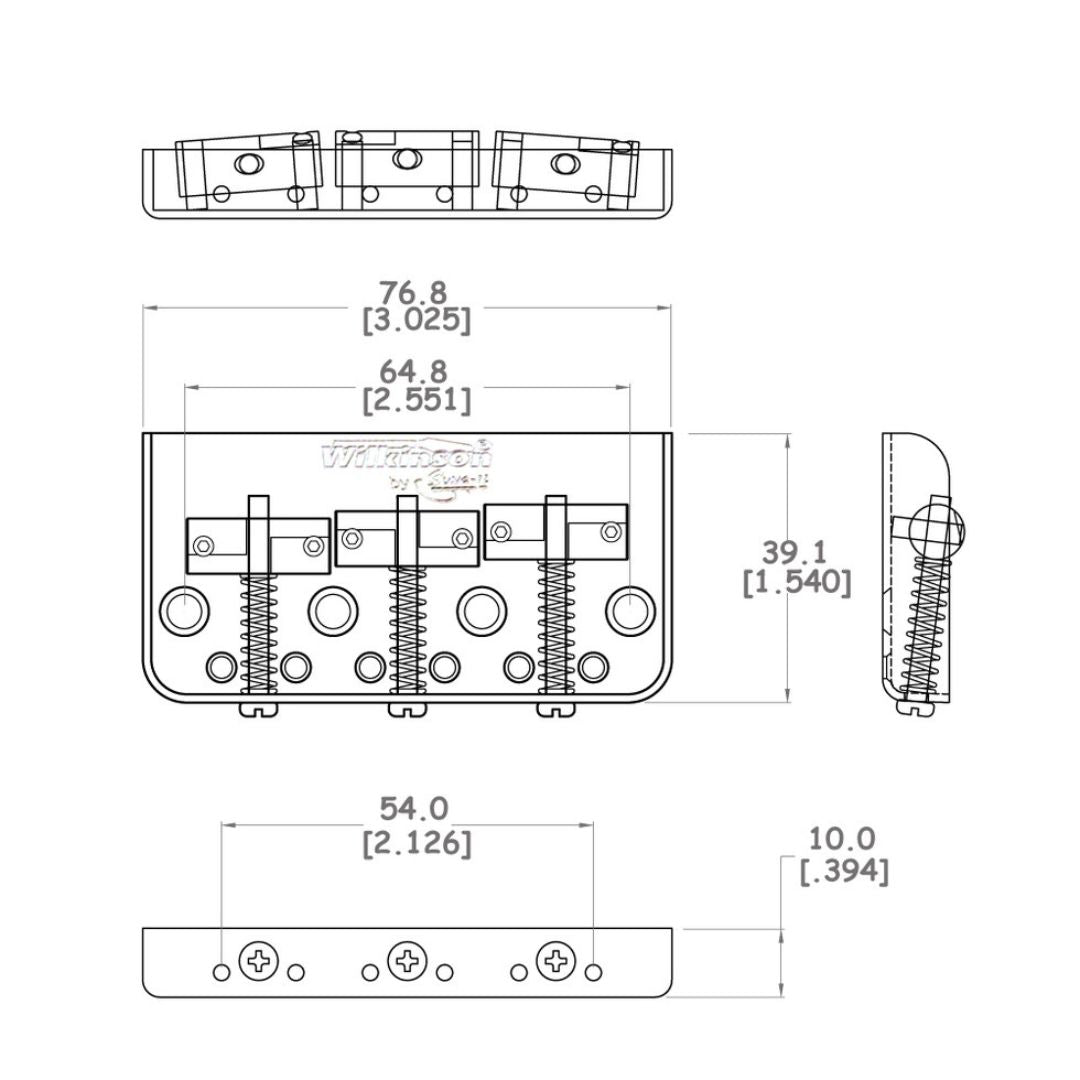 The Wilkinson® short bridge for Telecaster® feature a steel plate with brass saddles and is meant to be used on Telecasters® that have a P90, humbucker, or other non-standard Tele® pickup at the bridge position. This bridge can be strung through the body or from behind the bridge.